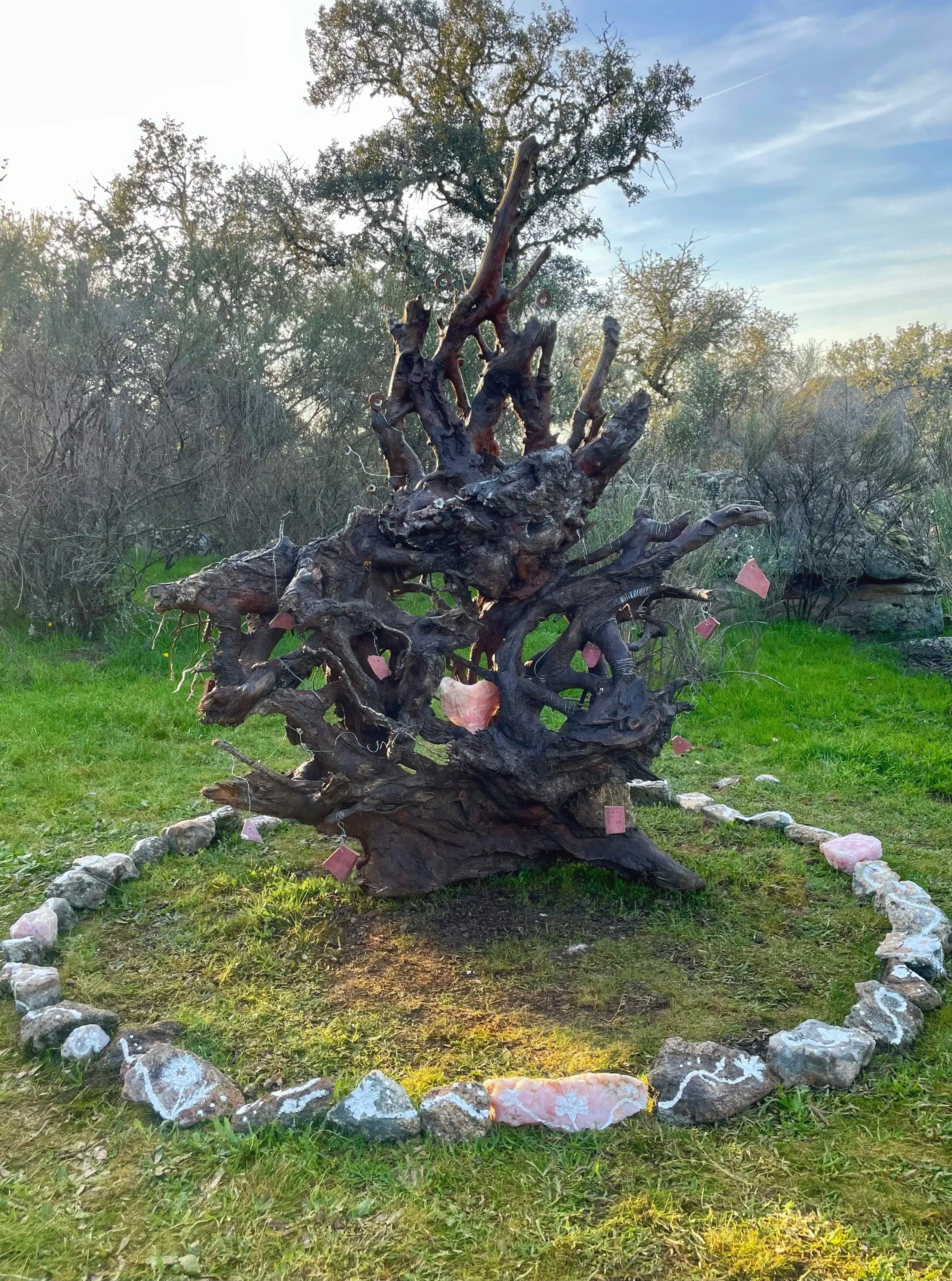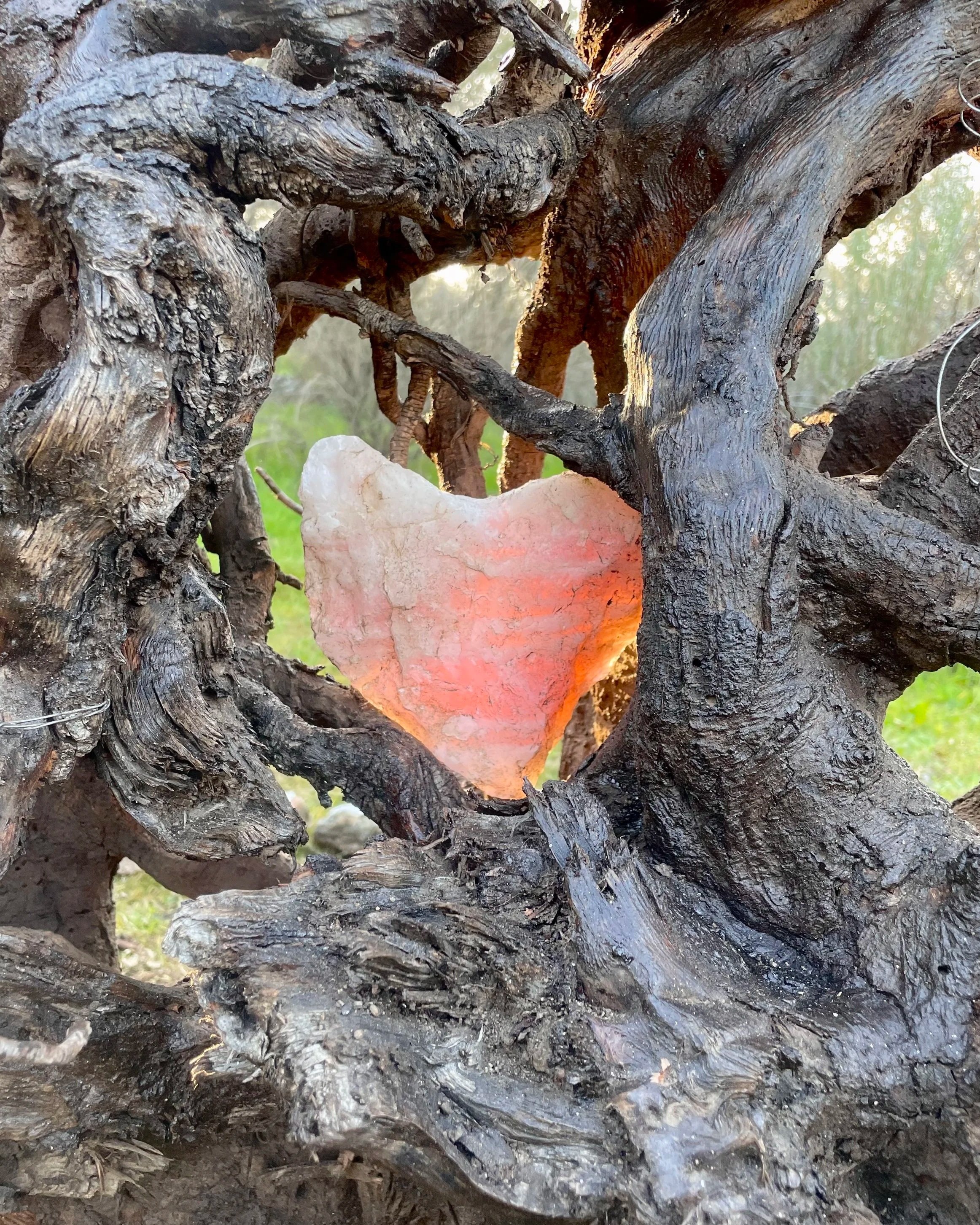 Acrylic paint, ceramic, found steel, rose quartz, wire, wood,