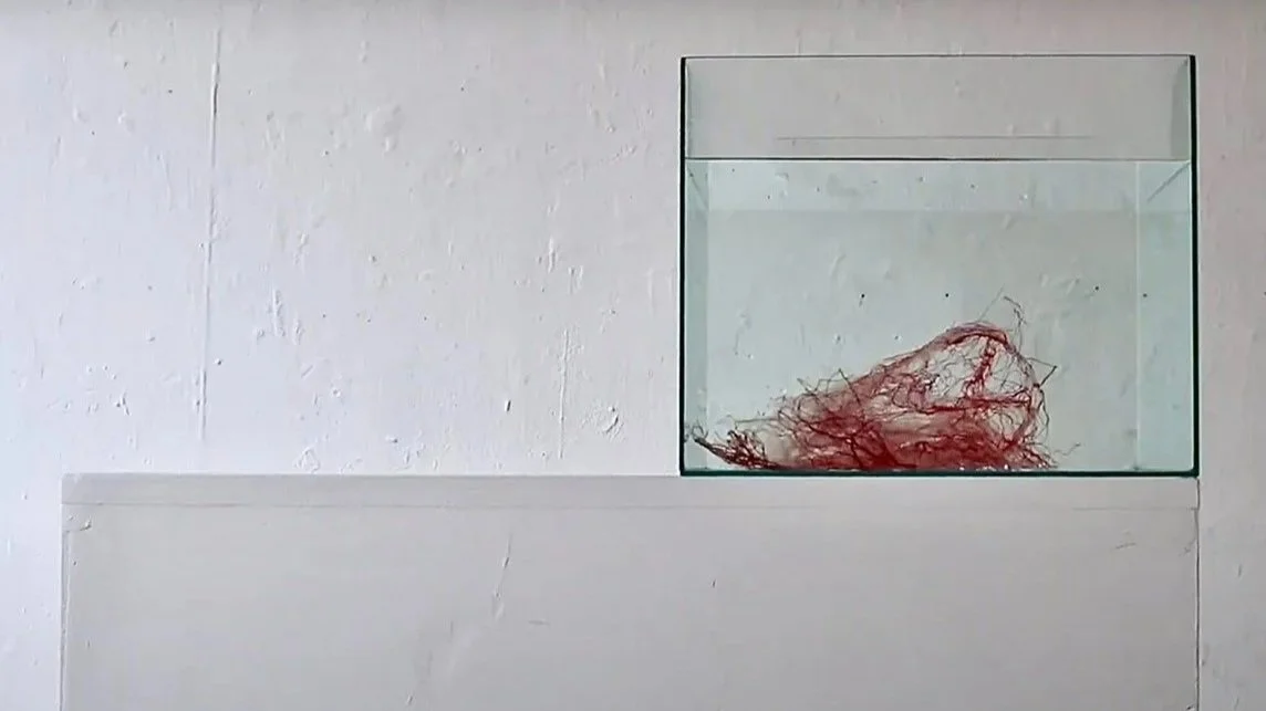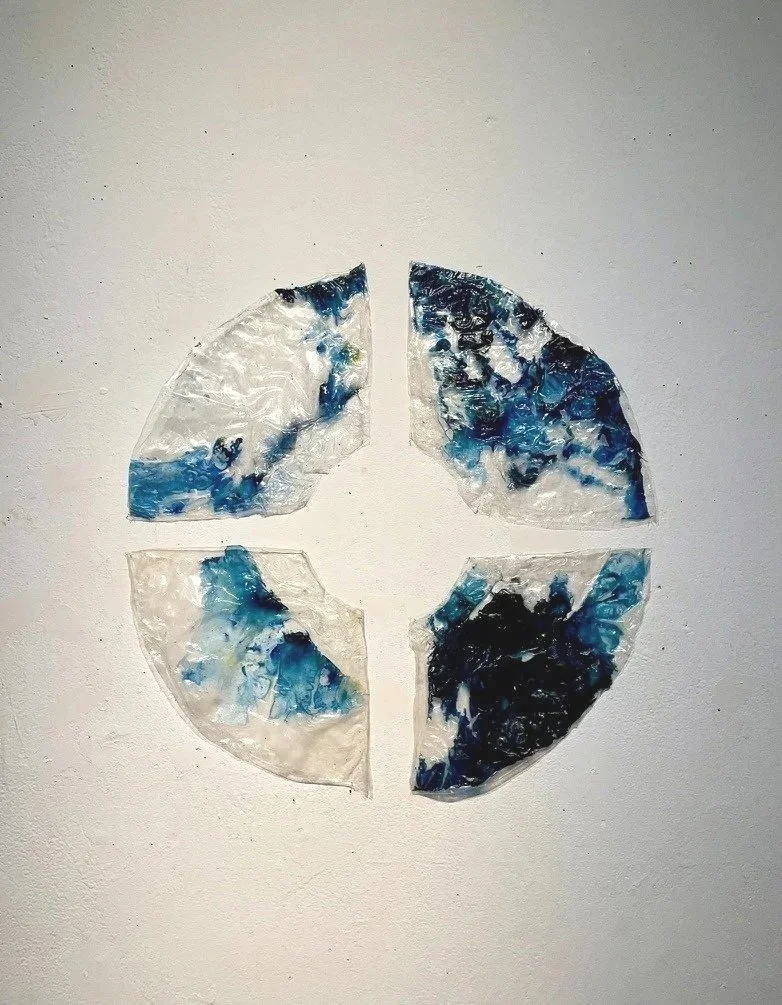 Acrylic, agar, potato starch, tapioca starch, thread